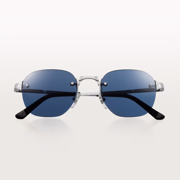 Сонячні окуляри Santos de Cartier з металевою оправою та гладким матовим платиновим покриттям