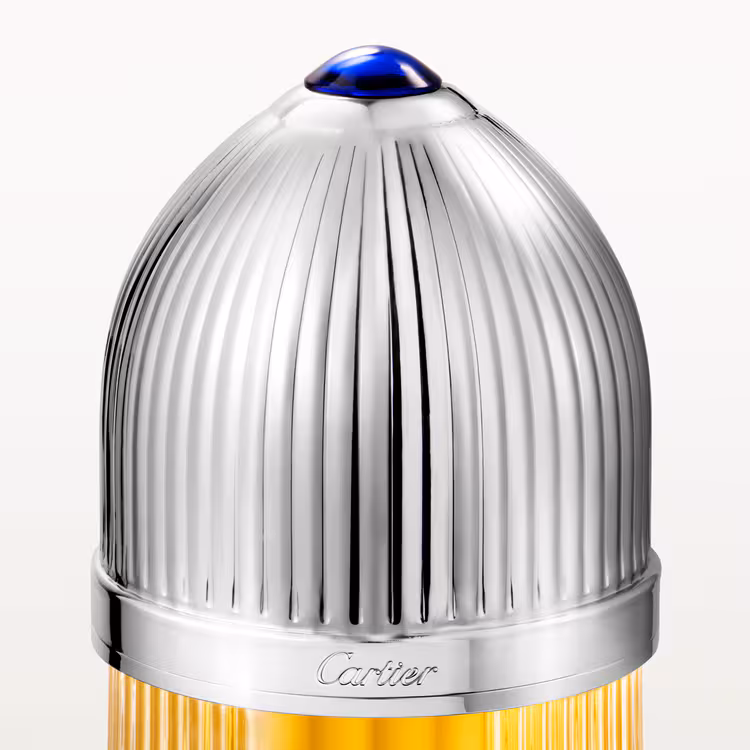 Культові ґадруни та кабошони на флаконі Pasha de Cartier відображають суворі кодекси бренду. Флакон доступний у форматі, що може бути повторно наповнений.