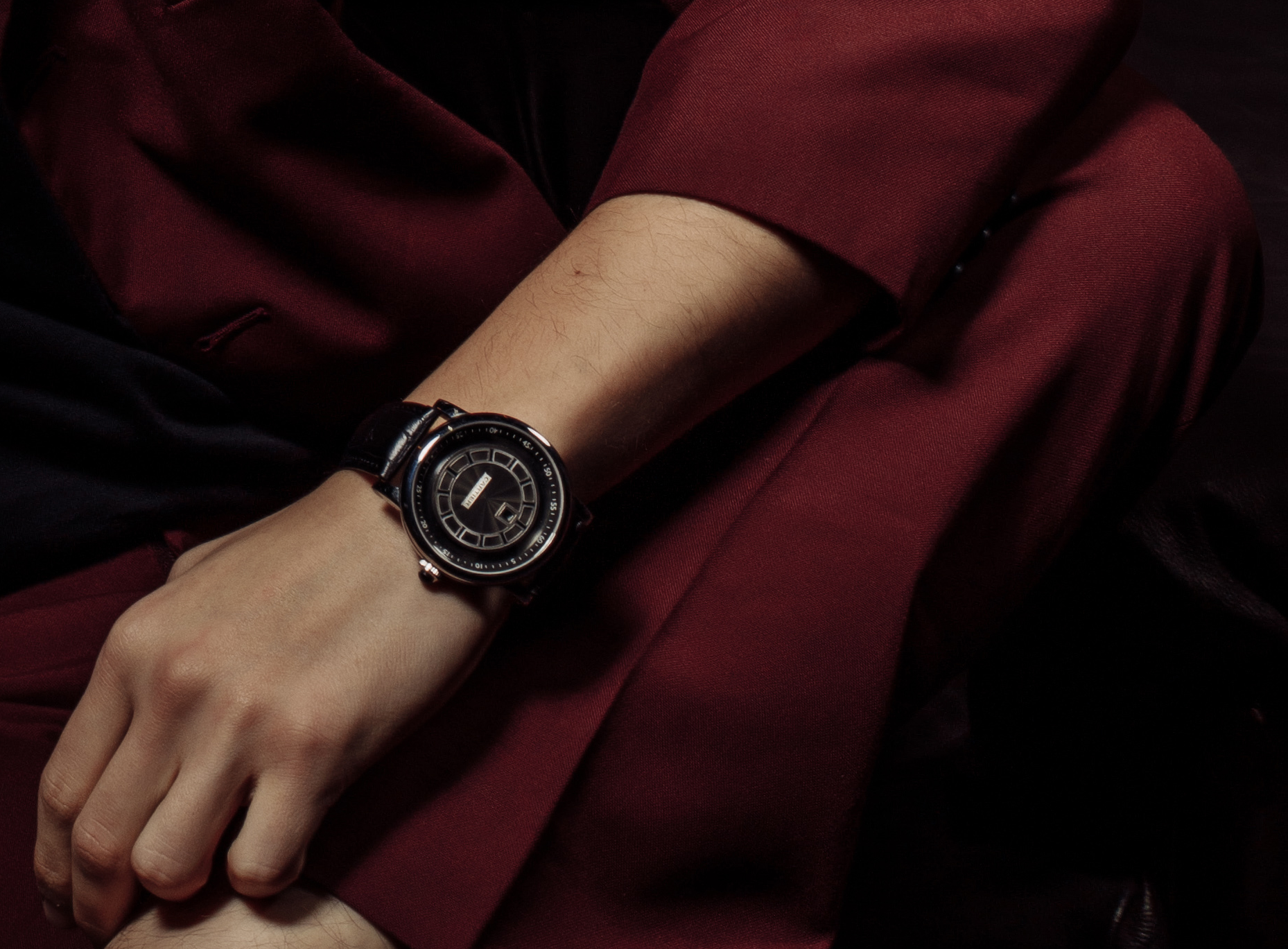 Години відображаються у спеціальному вікні на позиції 12-ї години та змінюються миттєвим стрибком щогодини. Хвилини показуються центральною стрілкою на гармонійно збалансованому циферблаті, що створює сучасне та мінімалістичне прочитання часу. Така конструкція підкреслює складність механізму та його точну роботу.